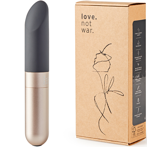 Love Not Warバレットシリーズは、美しいデザイン性とサステナブルであること、どちらも兼ね備えた素材「リサイクルアルミニウム」をベースに作られています。お肌に直接当たる先端部分は、ふんわりとソフトな心地よいシリコン。表面がベタつかず、なめらかですべすべしています。柔らかさを保ちつつもホコリは付きにくく、洗い流してお手入れすることが簡単です。撫でるように繊細な振動から、お腹の中心に向かって響きわたるパワフルな振動、さらに、リズミカルな脈動まで、全10種類のバラエティに富んだ振動パターンを選べます。ボタン一つでシンプルな操作。小型のトイで静音、ポーチも付属のLove Not Warバレットシリーズは、携帯に向いているトーイです。30分以内であれば1mまで浸水可能な完全防水仕様なので、万が一浴槽に落としてしまっても安心。バスルームでも楽しめて、使える幅も広がます。●素材:シリコン、リサイクルアルミニウム、リサイクルABS樹脂、バイオプラスチック●充電方法:USB●充電時間:フル充電2時間●連続使用可能時間:最大1時間●振動パターン:10(振動強弱4段階+リズムパターン6種)●防水:完全防水(IP67)●トラベルロック機能つき※こちらの商品は受注発注商品の為、ご注文から発送までに3、4営業日掛かる場合が御座います。