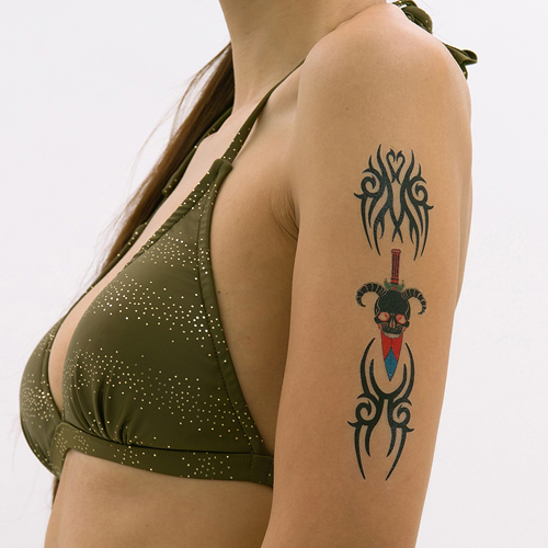TATTOO(タトゥー)シールで、グッと色っぽく!いつものコスプレ衣装に合わせて、こだわりの箇所に貼り付けるだけ!特殊な素材を使用しているので、皮膚の動きと一緒に伸び縮みします。入浴したり、海やプールに入っても2、3日は取れません!あなたならどこに貼る?SM女王様風に胸元?ほのかにセクシーな首筋?クールに決まる腕?小悪魔ちっくな足首?パーティーに、お祭りに、イベントに、大活躍!あなたの個性で選んでね!