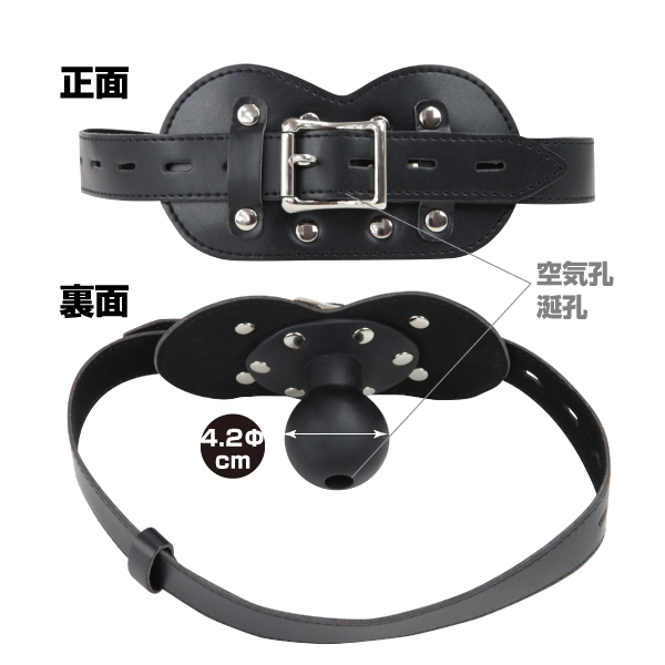 唇の形をしたマスクの正体は、口元を完全拘束するボールギャグ!ボールはマスクの内側にあり、はたからは見えない作り。ハードプレイでも対応出来るよう空気口があり、そこから涎が垂れる仕組みになっていて羞恥心を煽ります!ボール部分は直径4.2cmのおしゃぶり型で咥えやすいサイズ。ですが、マスクが圧迫感を与え、悶え喘ぐ姿に大興奮!ハードなブラックは重厚感がありスタイリッシュなデザイン!ベルトは調節できるので、女性男性関係なく拘束する事が可能!存分に可愛がってあげて下さい!