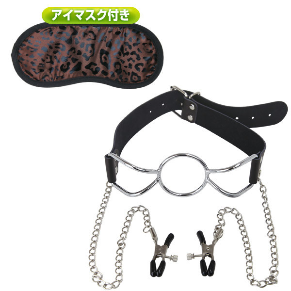 鉄輪拘束でエロく自由を奪う!アイマスクもセットになった「鉄輪口枷の魅力はエロにあり」。玉のないシンプルなオーリングタイプで、口の中が丸見え!溢れる唾液がエロく厭らしく支配欲を掻き立てます。さらに、その先に付いた乳首クリッパーで、痛みと快感の狭間を刺激!クリップ部分はつまみで圧力調節が可能なので、締め付け具合も自由自在。アイマスクとの併用で、辱めの極致へとエロく誘う鉄輪拘束グッズです。※アイマスクのデザインは、画像とは異なる場合がございます
