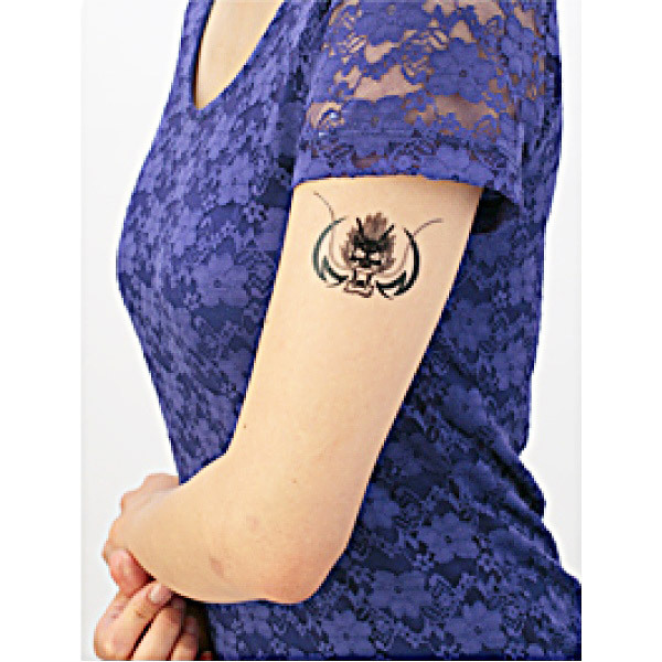 牙をむいた迫力のある龍の顔と、それを囲うようなトライバルデザインが目を引くタトゥー(刺青)シール。本物の彫師がデザインした、他にはないオリジナル仕様。水を使い肌に転写すると、海や川など水辺でのレジャーでも3日ほどプリントが持続します。特殊素材を使用して皮膚の動きにも柔軟に対応、よれずにキレイを保てます。落とす際は専用のリムーバーやクレンジングクリームなどを使用してください。