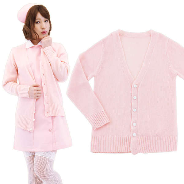 ナース服にぴったり!サッと羽織れて便利な、やさしいピンク色のカーディガンです。ナース服のコスプレ衣装を持っているなら、ぜひどうぞ!シンプルで可愛いボタンオープンタイプなので、お医者さんの白衣にも似合う薄手のカーディガンです。※カーディガンのみの販売となります。
