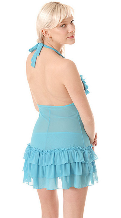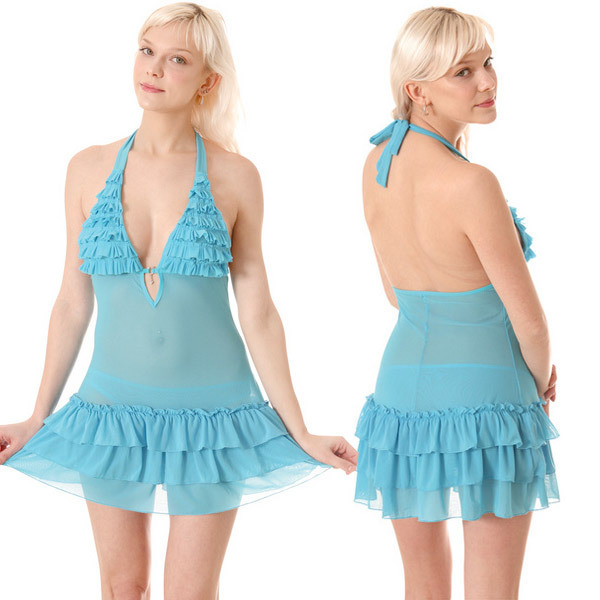 気分はマーメイドプリンセス♪フリルたっぷりのラブリーなベビードール&ショーツ。●ホルターベビードール(調節可)&ハーフバックショーツ●爽やかなサックスブルーカラー●ボリューミーなフリルでメリハリづけ●フロントホック付き。メッシュから透けて見える肌がちょっぴりセクシーなランジェリーです。