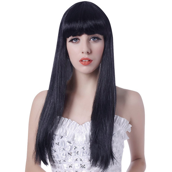 髪を伸ばすのは面倒だけどロングヘアに憧れるあなたに…!様々なヘアアレンジが楽しめるロングウィッグ。●落ち着きのある上品なリッチブラックカラー●前髪パッツンのストレートタイプ●大人の色気を感じさせるコケティッシュスタイル。普段のオシャレアイテムとしてもコスプレのお供としても大活躍するヘアウィッグです。※こちらの商品は受注発注商品の為、ご注文から発送まで2〜3営業日掛かる場合が御座います。