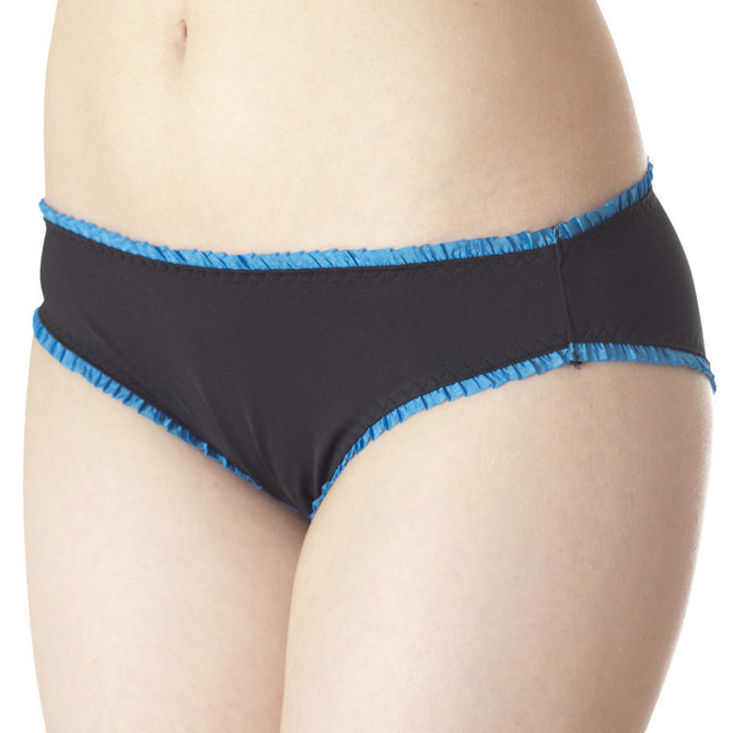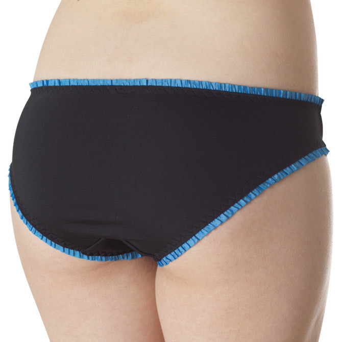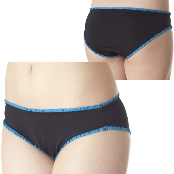 デイリー使いにピッタリ!チラ見えしても可愛いフリルショーツ。●ブラック×ブルーの知的カラー●飾りを省いたシンプルデザイン●細かなフリルで上下を縁取り●ナチュラルなフィット感●安心感のある深めの足ぐり。花びらのような繊細フリルをたっぷりあしらったラブリーさと、すっきり無駄のないシンプルさが魅力的な女性用ランジェリーです。