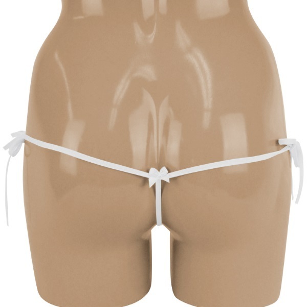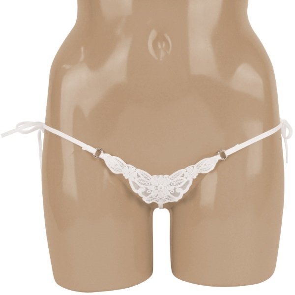 驚きの極小デザイン!ギリギリまで魅せる超セクシーなマイクロショーツ。●フロント:花柄刺繍入りレース●フロントをリングで繋いだオシャレなショーツ●結んで解くドキドキの紐パン●バックはお尻が丸見えなTバック仕様●女性用Mサイズ・日本製。両サイドを結んでできるリボンと、後ろに付いた小さなリボンがとってもキュートな大人ショーツです。