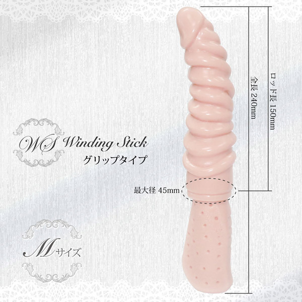 ちょいグロだけど快感度強め!ワイルドな挿入感が味わえるエロティックディルド。●ボディがうねった衝撃的デザイン●たっぷり肉ヒダのような螺旋形状●先端部分は亀頭風でスムーズにin●挿入長15cmで奥までしっかり届く●中〜上級者向け設計の最大径45mm●グリップ付きで攻めプレイにも◎●安心素材で作られた純日本製。普通のディルドじゃ物足りないワイルド女子にオススメ!ちょっぴりグロいけれど官能的な螺旋ヒダに覆われた柄付きディルド。自分で突くのはもちろん、パートナーに突いてもらう攻め系プレイにも役立ちます。
