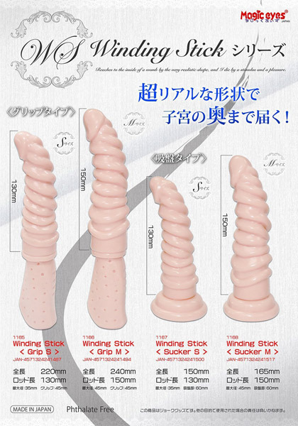 大きくうねりを描いた螺旋形状のユニークなディルド。●「ワインディングスティック」シリーズ・サッカーS●全長:約15.0cm/挿入部:約13.0×3.5cm●クネクネ螺旋を描いた刺激的なボディ●細めの先端・スムーズな挿入感●初心者でも気軽に挑戦できます●床や壁に引っ付く吸盤付き●安心の日本製。膣壁を刺激しながら子宮へ到達!今まで感じたことのない絶頂感を体験できるディルドです。