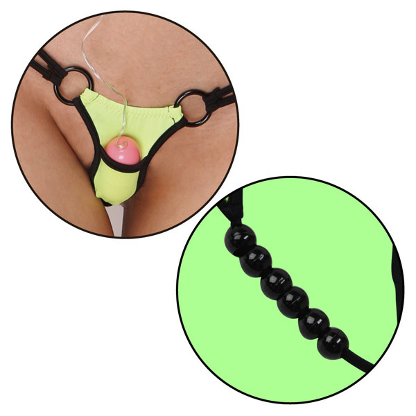 ポケット&連結ビーズ付きで過激に♪極小フロントのセクシーショーツ。●ポップなグリーンカラー●上下左右2wayに伸縮●フィット感も良く履き心地も良好●フロント外側に収納ポケット付き●クロッチ部分にビーズを連結●丸カンで繋いだ両サイド●腰紐はダブルストリング。ミニマムなフロントとWストリング、そしてポケットに6連ボールビーズまで盛り込んだ遊び心たっぷりなセクシーランジェリーです。※ローターは付属しておりません。