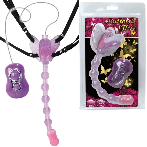 ガッシリ固定で3点同時責め!ベルト固定式のバタフライ型ローター「バタフライエフェクト」。●挿入したままベルトで固定可能●裏側の小突起でクリトリス責め●ペニス型の突起でヴァギナ責め●20cmのロングビーズでアナル責め●柔らかで丈夫なエラストマー素材●ヴァギナとアナル側に強力モーター●7種類の振動パターンを搭載。前も後ろも強力悶絶刺激!奥深くまで響く快感振動のベルト装着型ローター。バタフライのディルド部とアナルビーズ先端にダブルモーターを搭載!ゴム製ベルトでしっかりと固定できるので、装着したまま外出すれば屋外プレイもお楽しみ頂けます。