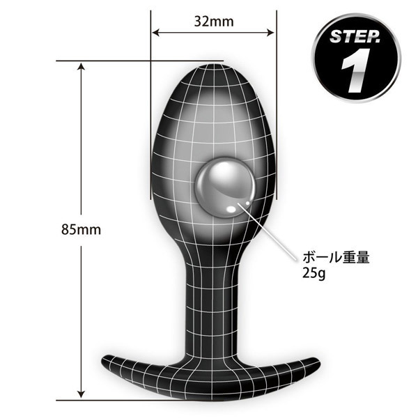内蔵ボールが中からノック!心地良い刺激がクセになるシリコン製アナルグッズ「プリティラブ スペシャルアナルプラグ STEP1」。●全長8.5cm×最大径3.2φcm●シリーズ最小ボディの「STEP1」●ストッパー付きのプラグ形状●安心安全な高品質シリコン素材●重さ25gのメタルボールを1個内蔵●自在に動いて存在感をアピール。アナル開発や日常装着用に♪コンッコンッとノックするような刺激を楽しめるメタルボール入りアナルプラグ。シリーズ最小ボディの「STEP1」はアナル入門者に最適なサイズです。