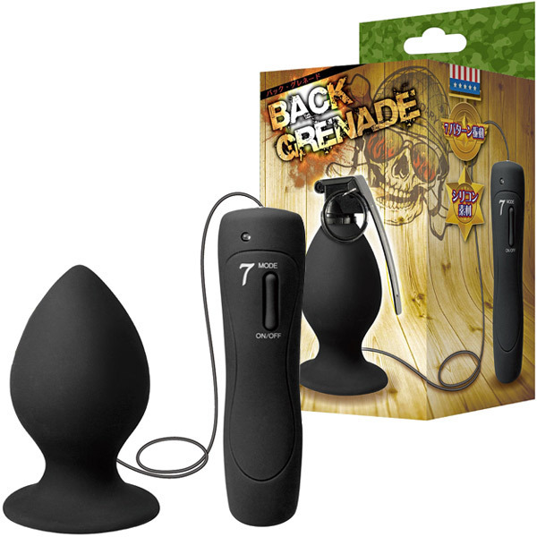 奥まで響く驚愕の激振動!高品質シリコン製アナルプラグ「バックグレネード」。まさに手榴弾のようなビッグボディは最大径5.2cm!極太サイズながら滑らかなフォルムでアナル開発済みの方であれば無理なく挿入可能。バイブレーションは芯まで響くハイパワーな7パターン振動を搭載!本体とリモコンは取り外し可能なジャック式、丸洗いも出来て衛生的。様々な楽しみ方ができる底面吸盤仕様のアナルグッズです。単四電池×3本付属。