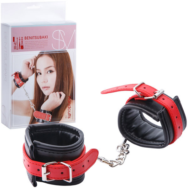 知る人ぞ知る伝説のSM女王プロデュース!初心者向けのチェーン付きSM手枷「紅椿 BENITSUBAKI 手錠」。黒と赤を基調とした洗練デザインの手錠はベルトタイプでサイズ調節も可能。厚手の合皮製でクッション性も高く、肌を傷つけにくいので安心!枷同士を繋ぐチェーンは取り外せるので他の拘束具ともジョイントできます。『紅椿』はデザイン性と機能性を兼ね備えた本格仕様ながら、これからSMを始めたいビギナーさん向けのラインナップを展開するSMグッズシリーズです。