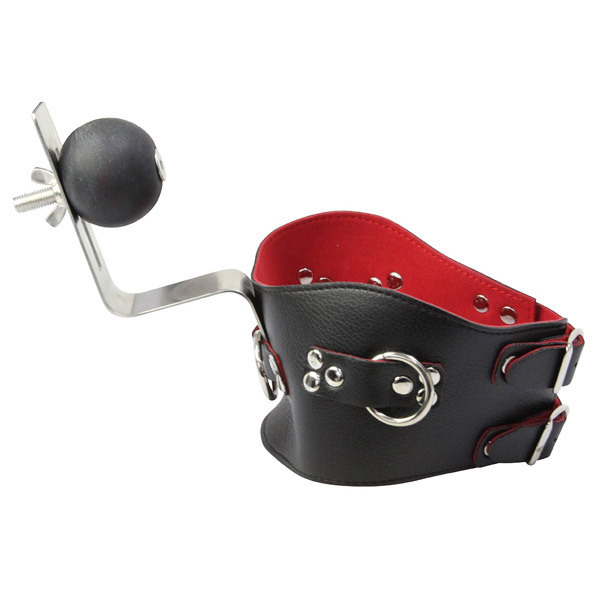 SMプレイの深淵へと導く!赤と黒のフェイクレザーが妖艶な『ABYSS』シリーズのSMグッズ「Abyss(アビス) 首輪固定式ギャグボール」。首にガッチリ固定された大型のボールギャグで口の自由を奪い、流れ出るよだれが羞恥心を更に煽ります。約4.5cmのボールは取り外して位置の調整が可能(首輪と金具の取り外しは出来ません)。材質はフェイクレザー・鉄・ゴムボール、首周りは約37〜42cmまでサイズ調節可能です。※モデル着用のニップルタッセル、ショーツ、ストッキング等は付属しておりません。
