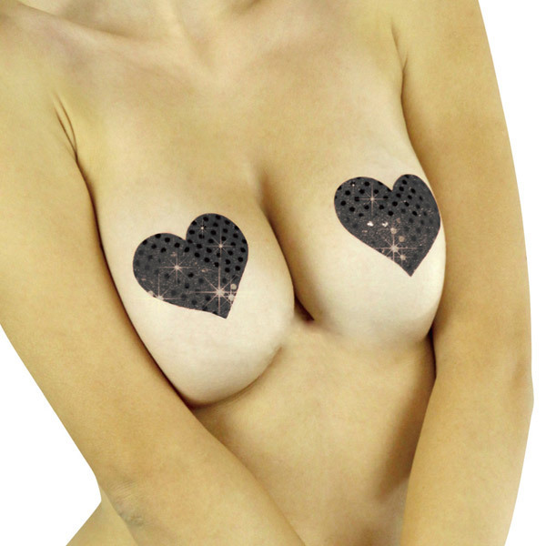 ピタッと貼るだけの簡単仕様♪バストトップに貼るだけで、セクシーな大人の雰囲気を醸し出す下着感覚のニップルジュエリー「ニップルシール ドットハート 黒」。同色ペア1組セット、1回使い切りシールタイプのボディアクセ。可愛らしいドット柄のハート型デザインはショータイムやナイトパーティーにも最適!透け・突起防止・擦れ対策にもお勧めです。