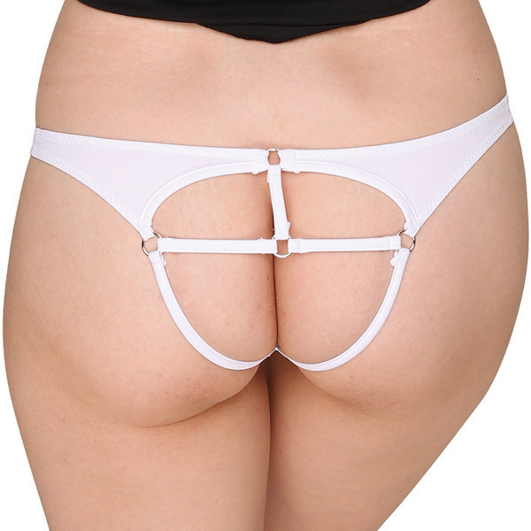 パートナーに大胆なサプライズ演出が出来るバックレスショーツ。伸縮性のあるストレッチ素材を使用していて、穿き心地は抜群!デザインもいたってシンプルで一見なんの変哲もない下着に見えますが……実は後ろに振り返ってみるとビックリ!本来あるはずの布はなく大きくセンターカットされ、中央には逆T字のストリング構成された大胆なデザインとなっています♪大切なパートナーとの夜にいつもとは違ったサプライズを考えているなら、ぜひこちらのショーツをご検討ください!