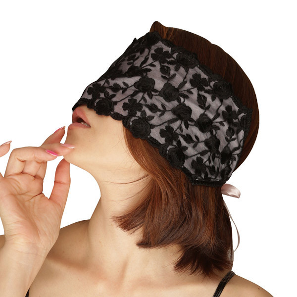 レース&薄コットンアイマスク 黒桃
