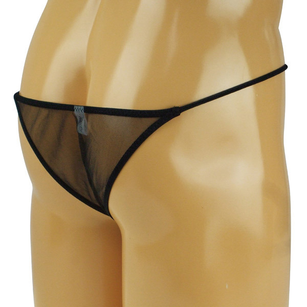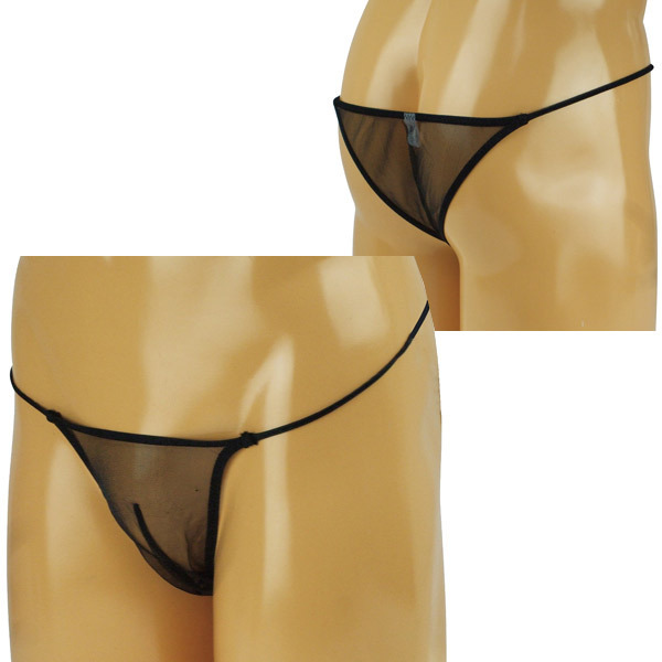 極薄のシースルー生地が大胆な男性用ショーツ。サイドは細い紐仕様でセクシー感UP!バックは半ケツ具合がそそるハーフバック仕様。