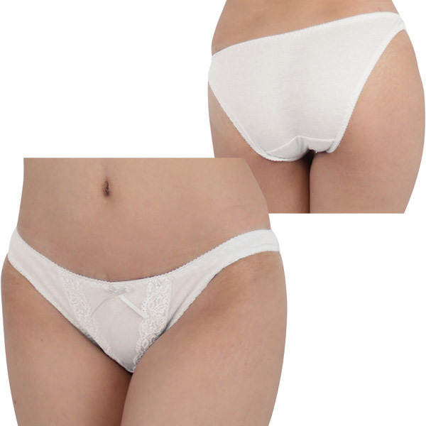 フロントをリボンとレースで可愛く飾ったコットン生地の日本製フルバック。清潔なホワイトカラーのショーツでピュアな貴方を演出♪コットンは吸湿性・通気性に優れているため、汗をかきやすい季節でも快適にお使いいただけます。