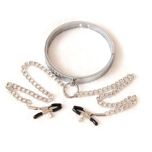 SMグッズで人気のブランドSMVIPの首輪とニップルクリップが合体!首輪の素材は合金メッキでデザイン性に優れ、鏡面仕上げで見た目も美しいです。厚みのある装着感のため、存分にM心を煽ってくれます!首輪はピンロックタイプで自らは取り外しにくい設計。冷たい金属の質感とほかの素材にはないホールド感の違いを味わってください!クリップの先端は柔らかく弾力のあるゴムがついているため、跡が残りにくく挟む強度を調整できるため、パートナーのレベルに合わせた調教が可能です!
