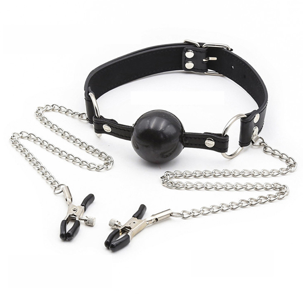 SMグッズで人気のブランドSMVIPからミックスアイテムが登場!簡単な拘束感が味わえることで人気のボールギャグとニップルクリップが一体となりました♪直径4cmのボールギャグを咥えさせることで口内の自由を奪う!涎は自然と滴り落ち、同時に乳首を挟んで責める。そんな卑猥なプレイにお勧めのミックスアイテムです♪口枷は合皮製のベルトでサイズ調整が可能!男女で装着出来て、口内を圧迫することができるでしょう。口枷から伸びたチェーンは40cmの長さがあり、先端のクリップにはゴムカバーが付いているので跡が残りづらく、締付けの強弱も調整出来ます♪