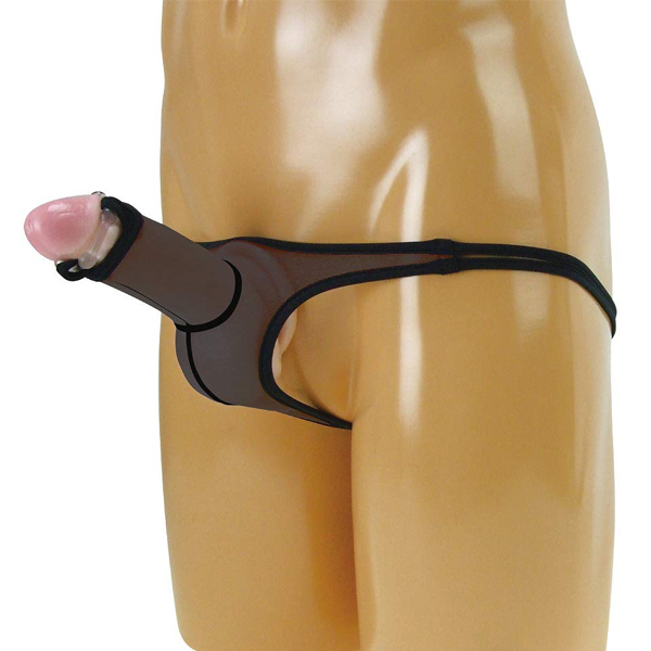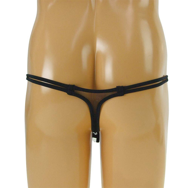 亀頭を大胆に露出させるセクシー仕様の日本製Tバック(黒)。穿き心地の良い極薄メッシュ地を使用!男性器を通す竿袋には締め付け刺激するリング付き。