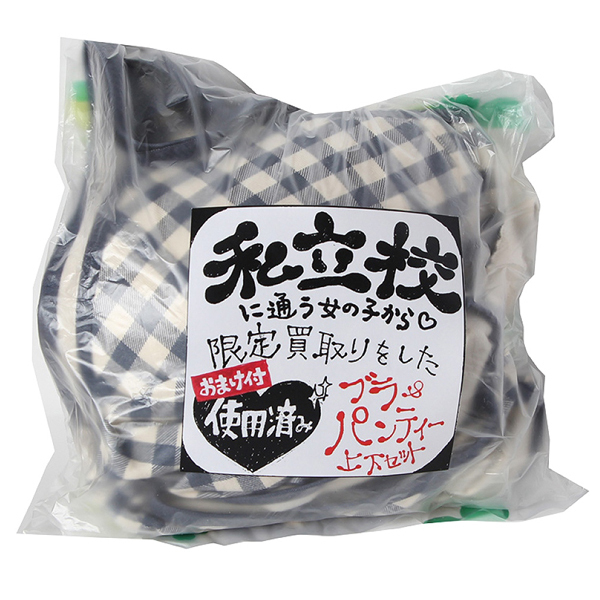 女子学生さんから買い取った匂いフェチ興奮のオマケ付き使用済み下着上下セット。シミや匂いが染み込んだ脱ぎたて生下着を密封!匂いを嗅いだり身に着けてみたり、夜のオカズアイテムに是非いかがでしょうか?