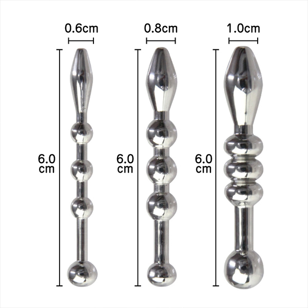 硬質なメタルボディが未知なる扉を開く!凹凸刺激か体感できるビーズタイプの尿道ブジー3点セット。煮沸消毒可能な金属製で衛生的に使える!個人の身体に合わせたサイズで楽しめる小・中・大の3本セットです。