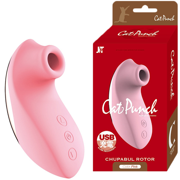 高品質かつ低価格をモットーに掲げた新ブランド「Cat Punch(キャットパンチ)」より、吸い付き刺激が堪能できるUSB充電式チュパブル振動ローター(ピンク)。チュパチュパと吸い付いたり、つつくような刺激などプレイパターンは9種類!肌ざわり滑らかなHGシリコン素材で優しく刺激します。超静音設計&手軽にお手入れできる生活防水仕様