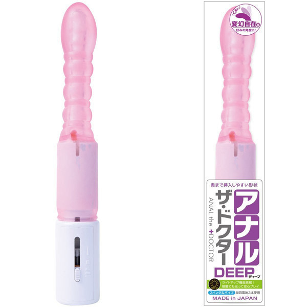 くねっと曲げて刺激!アナル開発に最適な人気のアナルバイブシリーズから好みの角度に曲げられるNEWタイプ「アナル・ザ・ドクター ディープ 変幻自在編 ピンク」が登場。奥まで突けるストレートボディの『ディープ』は丸みを帯びたエッグ型の先端部と、細リングと太リングを交互に連ねたようなポコポコフォルムが特徴。バイブレーションはスライドスイッチで簡単に調節可能!暗闇で使うと幻想的な雰囲気を楽しめるライトアップ機能も搭載されています。アナル初心者さんでも安心してスムーズに挿入できる日本製アナルグッズです。単四電池3本付属。※仕様変更によりスイング機能は搭載されておりません。