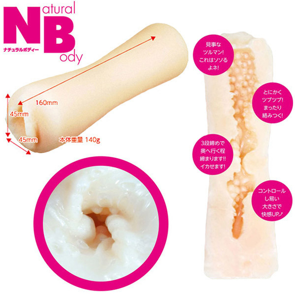 弾けるようなぷりぷり感がヤミツキになる!国産素材でナチュラルボディに仕上げたハンディオナホール。●全長約16cmのロングボディ●もっちり柔らかな素材を使用●うっすらピンクがかったエロボディ●ちょっぴり開いたヒダ付き挿入口●異なる大きさのツブツブ構造●最後までしっかり締め付ける3段締め形状●日本製。シンプルな見た目ながら、内部はしっかり快感ポイントを押さえた満足度の高いオナホールです。