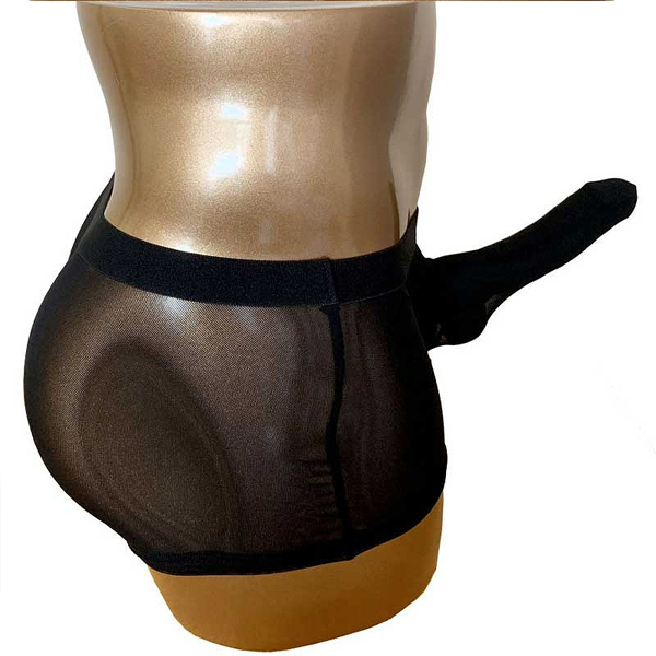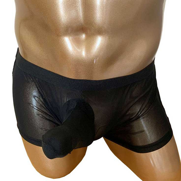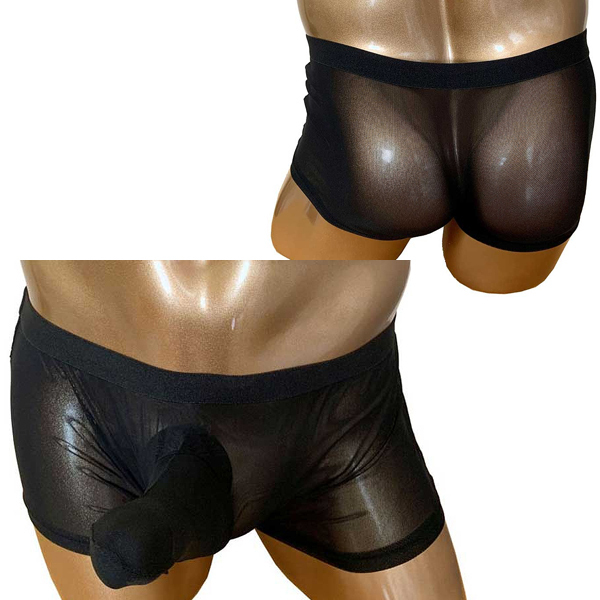 サイズアップした状態でもしっかりホールドする男性用シアーボクサーパンツ。フロントに余裕を持たせているため、通常時から高まった時まで変わらない着心地♪涼し気で通気性の良いメッシュ生地仕様なので、蒸れで肌に張りついて困っているという方にも最適です◎ブラックカラー、フリーサイズ