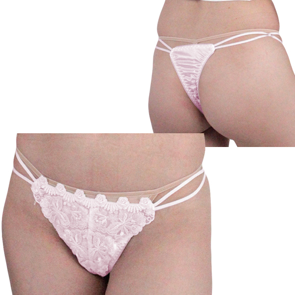 > 肌触りのいい光沢レース付き脇2本ゴムTバック ピンク
