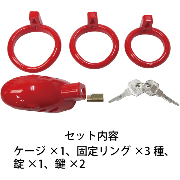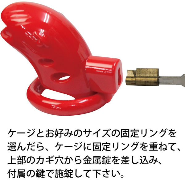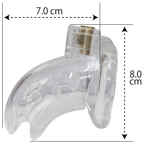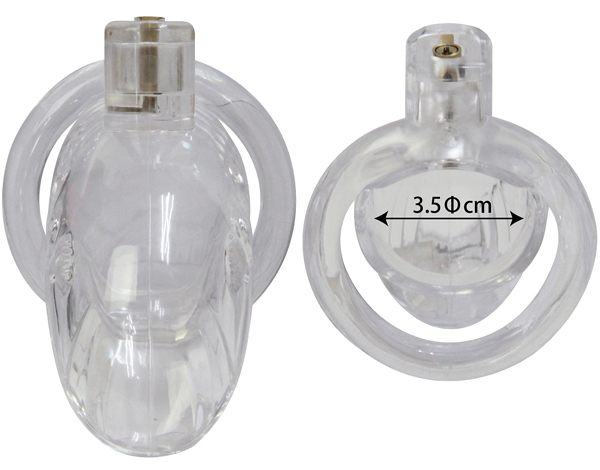 中の様子が見て分かる!透明ケージ&固定リングで勃起を抑制するプラスチック製の男性用鍵付き貞操帯。2つのパーツで簡単装着!先端スリット入りで装着したまま排泄可能な機能性に優れたデザイン♪鍵も上部に設置しているため目立ちにくく邪魔にもなりません。固定リングは内径4.1cm、4.6cm、5.1cmの3サイズで、ケージは全長7cm、幅3.5cm仕様◎クリアカラー