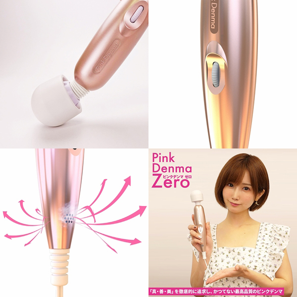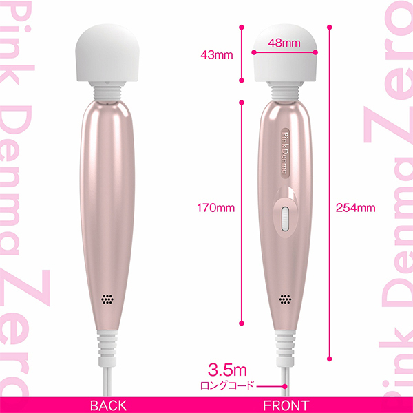絶対イカせる電マシリーズから「PinkDenma Zero(ピンクデンマ ゼロ)」が新登場!家庭用AC電源タイプで電池切れの心配無用♪シリーズ初となるコード付きで長さが3.5mとロングサイズ!そのハイパワーさとも相まって自宅はもちろん、ラブホテルなどでコンセントが届かないといった悩みも極力防止。ほぼ延長コード無しで楽しめる設計でコード付け根の断線の不安もエラストマー素材によりしっかりカバー♪パートナーと使っているときにコードがピーンと張ることもないでの大変便利です。ヘッド部分は柔らかなエラストマー製スリックヘッド。内蔵モーターは9000rpmで無段階のダイヤル式コントローラがブレない気持ちよさを実現!気になるパワーは低速でも安定感、高速にすると激震が体に走るほどの振動感を味わえます。ネックのしなりも上々でヘッド径は4.8cm♪4.5cm用のアタッチメントにも対応していて幅広い種類の装着が可能です。表と裏には2箇所の排気孔があいているので使用中の熱がこもりにくい親切設計となっています♪音も静かで持ちやすいフォルムと上品なピンクも◎