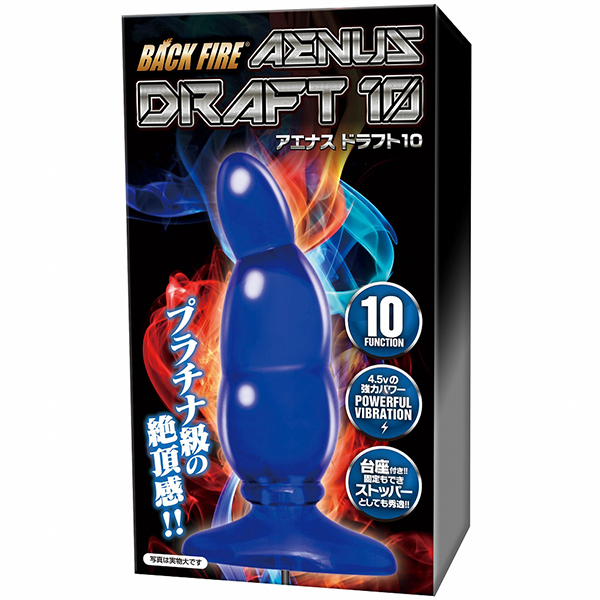 先端部分がフックした独特の形状の「バックファイアー アエナス ドラフト10」。人気の高い「ドラフト」シリーズの電動アナルプラグで先端、中腹、底部と3段階に太くなる振動モーターを内蔵!少し柔らかめの素材は肌触りも良く、適度な柔らかさで安心感にもつながります。先端付近は特に挿れやすく、先端のフック形状を上手く使うことで前立腺刺激にも活躍しそう♪中腹と底部は同程度の太さでストッパーまで挿入しても◎。コントローラーは有線で繋がっているのでホールドや操作もしやすくシンプル操作で10パターンの振動が切り替えられます♪圧着感と圧迫感は硬質な素材よりも高めとなっております。【単四電池×3本(付属)】