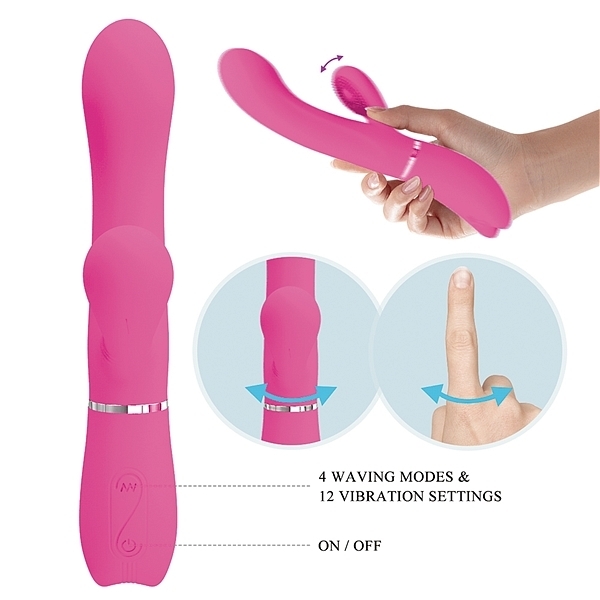 指先が高速でCスポットを弾いているような子機の動きと、挿入部と連動した強力震動が性感帯をダイレクトに刺激する快感バイブレーター!サイドウェービングとバイブレーションは別操作可能。メモリ機能も搭載されているため、お気に入りのパターンをいつでも楽しめる!シリコン製の程よい柔らかさのボディで挿入感抜群です。●7パターンのサイドウェービング●12パターンの強力震動●高品質シリコン素材●生活防水※アルカリ電池をご使用ください、電池の容量不足やマンガン電池使用の際動作が不安定になる場合がございます、挙動が不安定な場合は新品のアルカリ電池を使用し、動作確認を行ってください。