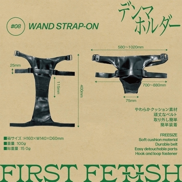 素材は動物を傷つけない合皮(フェイクレザー)を採用しお手入れも簡単。初心者からベテランまで納得の、本当に使えるSMグッズです。デンマホルダーは、ハンズフリーでデンマを固定できる、強制絶頂アイテム。デンマのヘッドと持ち柄を、がっちりホールドします。しゃがみ・逆正座・M字開脚など、どんなポーズでもOK。強力な振動でもズレることなく、執拗に秘部を責め続けます。サイズ調整は、アジャスターで自在。体格にかかわらずジャストフィットします。肌ざわりは、合皮なのでとてもソフト。