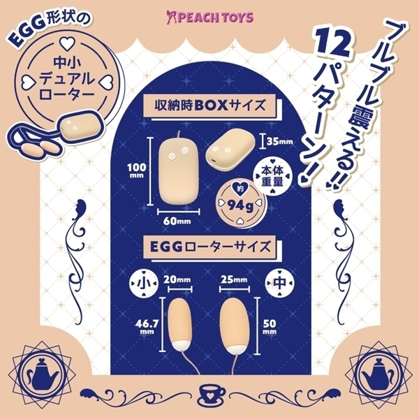 パッケージ:16.0×7.0×5.0cm 本体:収納時BOX10.0×6.0×3.5cm・EGGローター(小)4.6×2.0cm・EGGローター(中)5.0×2.5cm・コード長約70.0cm USB充電式