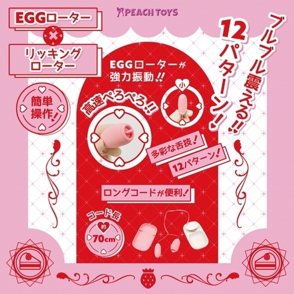 パッケージ:16.0×7.0×5.0cm 本体:収納時BOX10.0×6.0×3.5cm・EGGローター(小)4.6×2.0cm・リッキングローター5.0×2.5cm・コード長約70.0cm USB充電式