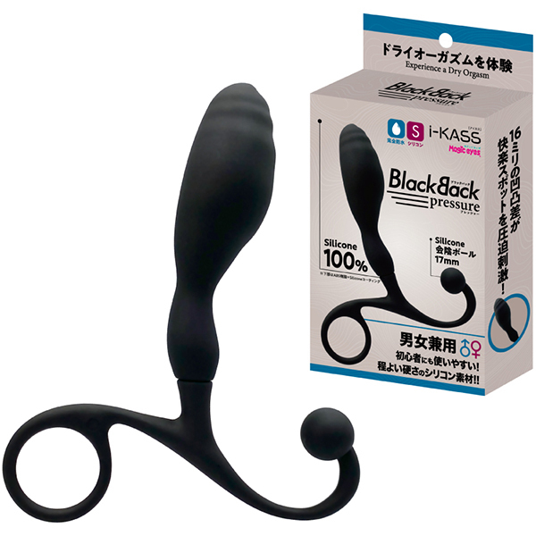 尻にいいアイカスにブラックバックシリーズが新登場!プレッシャーはその名の通りシリーズ最大径の27mmと拡張も視野に入れた初中級者モデル。シリコン部の全長140mm上部ヘッドは93mmと中を圧迫できます。会陰ボールも搭載しておりドライオーガズムを体験する第一歩のグッズとして最適です。