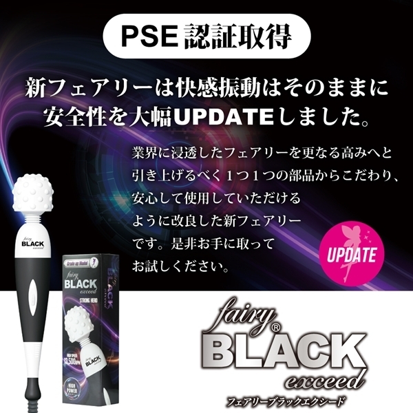 最強クラスの振動力を誇る「フェアリーブラックエクシード」が安全性を高めてアップデート登場♪毎分13,500回転の超ハイパワー振動を実現し細部までしっかり届くパールヘッド構造が特長です!強弱は無段階で調整可能なダイヤル式♪お好みの振動に細かく対応します!排熱機能を搭載しており長時間でも熱くなりにくい安心設計♪2.5mのロングコードで自由な動きをサポートします!断線防止機能とPSE認証により安全性も強化♪ブラックのスタイリッシュなボディは男女問わず使いやすく高級感ある仕上がりです!専用ポーチ付きで収納や持ち運びにも便利♪ハイパワーと機能性を求める方におすすめのハンディマッサージャーです!