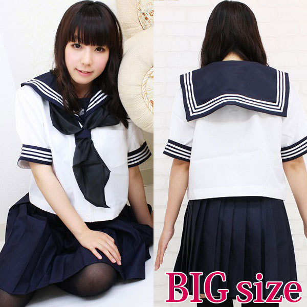 大きめスカーフが特徴の制服コスプレ!半袖の夏服バージョンです。スタンダードなデザインの白×紺の上下に、スカーフもセット!一式揃ったセーラー服のコスプレ衣装です。襟と袖口には三本ライン、胸元には刺繍入り。※水洗い不可、塩素系漂白剤による漂白不可、アイロンは中温で当て布使用、ドライクリーニング可、色落ちの可能性があります。※こちらの商品は在庫の状況によりお届けまでに4日〜7日程度かかる場合がございます。