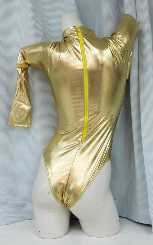 ハイレグからむっちりはみ出るお尻と脚がたまらなく際立つ、ゴールドカラーの長袖ハイネックレオタード(BIG)。エナメルの様な光沢感の生地は伸縮性があり、女性特有のボディラインがくっきり浮き彫りに!ヒップ部分の食い込みがエロセクシーなレオタードコスチュームです。大胆な体操選手になりきって、アクロバティックな夜を体感しましょう!※手洗い可※こちらの商品は在庫の状況によりお届けまでに4日〜7日程度かかる場合がございます。