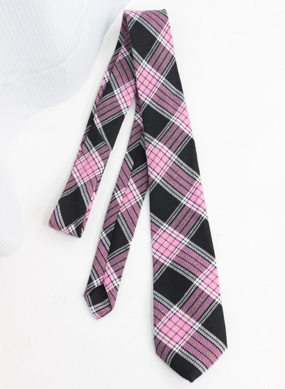 キラキララメ入り!斜め格子がお洒落な、ピンクチェックのスクールネクタイです。手軽なマンネリ対策として、コスプレ小物をチェンジ!襟元のリボンを、白シャツに映える大人可愛いチェックのネクタイに変えてみませんか?※水洗い不可、塩素系漂白剤による漂白不可、アイロンは中温で当て布使用、ドライクリーニング、色落ちの可能性があります。※こちらの商品は在庫の状況によりお届けまでに4日〜7日程度かかる場合がございます。