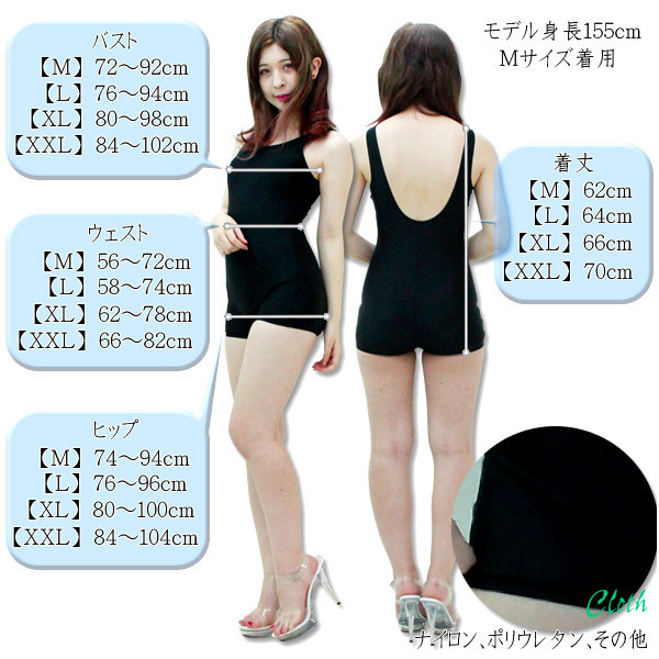 Mサイズ:B72〜92cm・W56〜72cm・H74〜94cm 着丈62cm セット内容:水着単品(前身頃全面に裏地付き、胸部にパット付き) 素材:ナイロン、ポリウレタン、その他