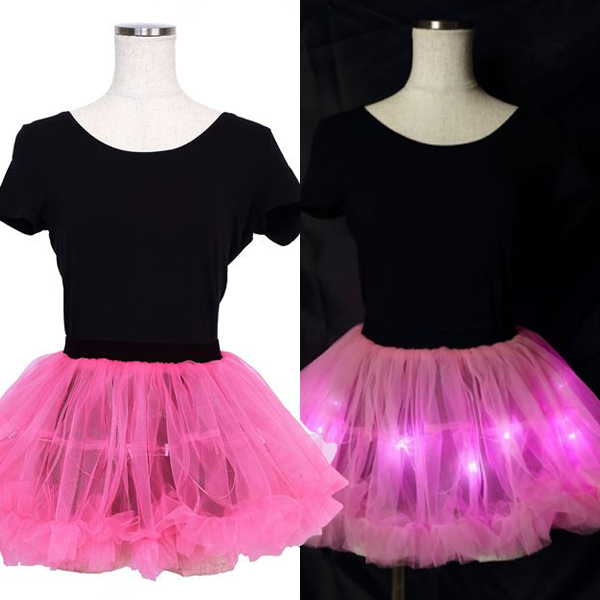 これ一つで貴方も闇夜のアイドルになれる!ふわっと広がるキュートなパニエです。光るワイヤーをスカート内側の2本あるループに通すことでピカピカと輝きます。ワイヤーを外し、普通のパニエとして使用するのもOK♪また、別売りではありますが追加でワイヤーを増やすことも可能!パニエ単体で洗濯していただけるので、何度でも繰り返し使用していただけます♪トップアイドルのように光り輝く存在となれ!※洗濯機不可(弱い手洗い可)、塩素系漂白剤による漂白不可、アイロン不可、ドライクリーニング不可。※対応サイズの目安:身長〜180cm・B〜101cm・W〜88cm・H〜99cm