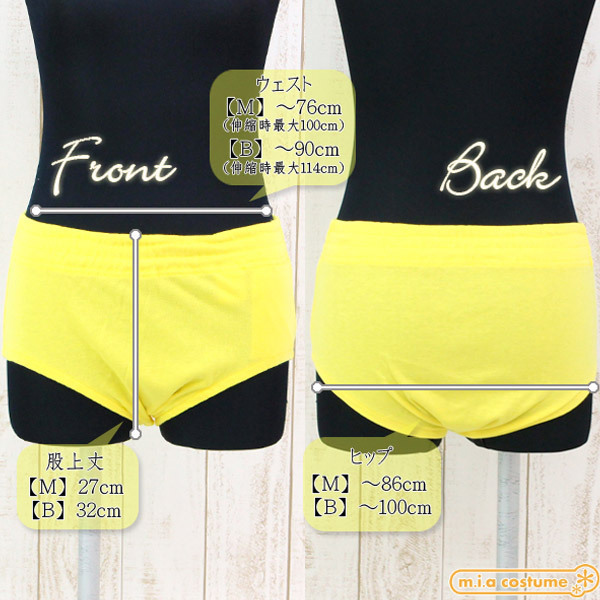 BIGサイズ W〜90cm(伸縮時最大114cm)・H〜100cm ブルマ:股上丈32cm セット内容:ブルマ単品 素材:ポリエステル65%、コットン35%