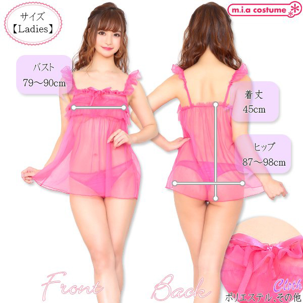 Mサイズ B79〜90cm・H87〜98cm・着丈45cm セット内容:ベビードール、ショーツ 素材:ポリエステル、その他
