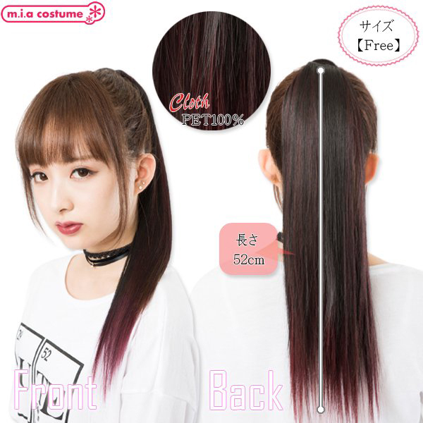 簡単にイメチェンできる着脱式の耐熱ポイントウィッグです。二つ使えばツインテールにもアレンジ可能!地毛に馴染みやすいサラサラの毛質だから違和感なくお使いいただけます♪発色の良いブラック×ワインレッドのカラーリングはライブなどのイベントにもおススメ。※商品は一つ入りです